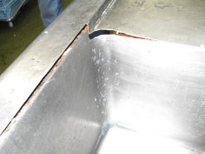 厨房ステンレスシンク台修理(現場TIG溶接)